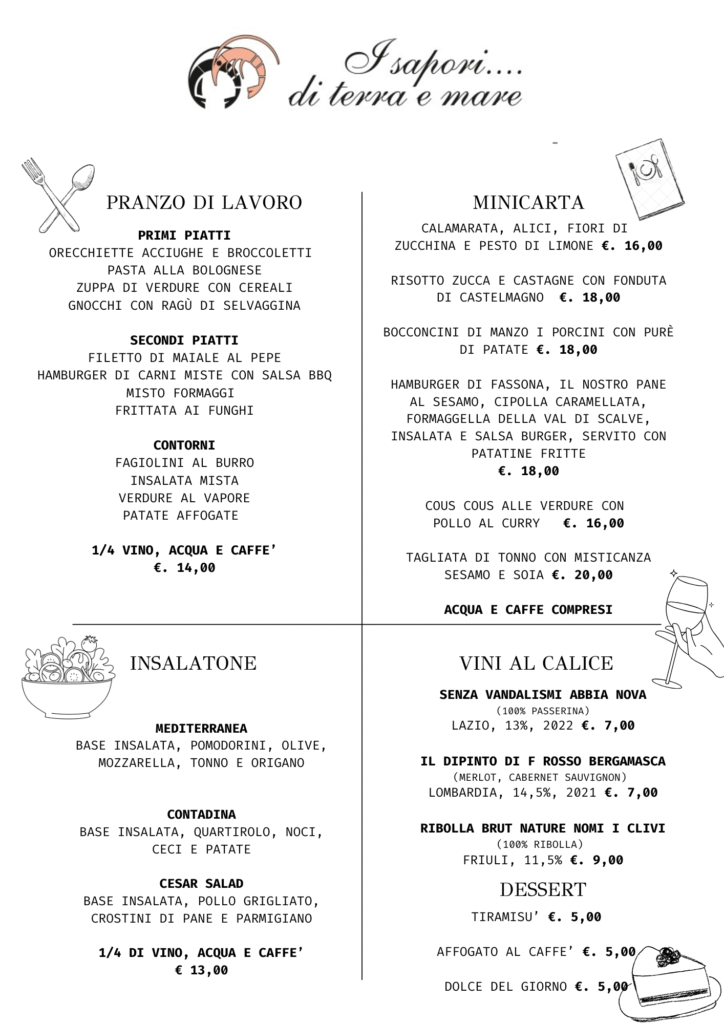 *Ogni piatto della carta è disponibile anche in mezza porzione