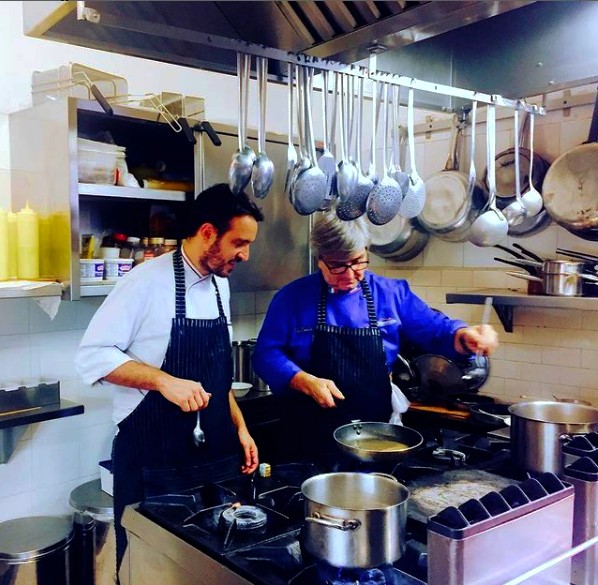 Crème brulée con gelato al pistacchio salato e grissino di noci pecan