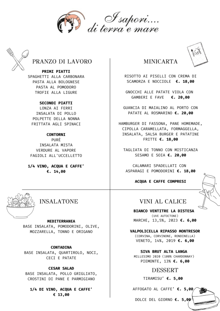 *Ogni piatto della carta è disponibile anche in mezza porzione